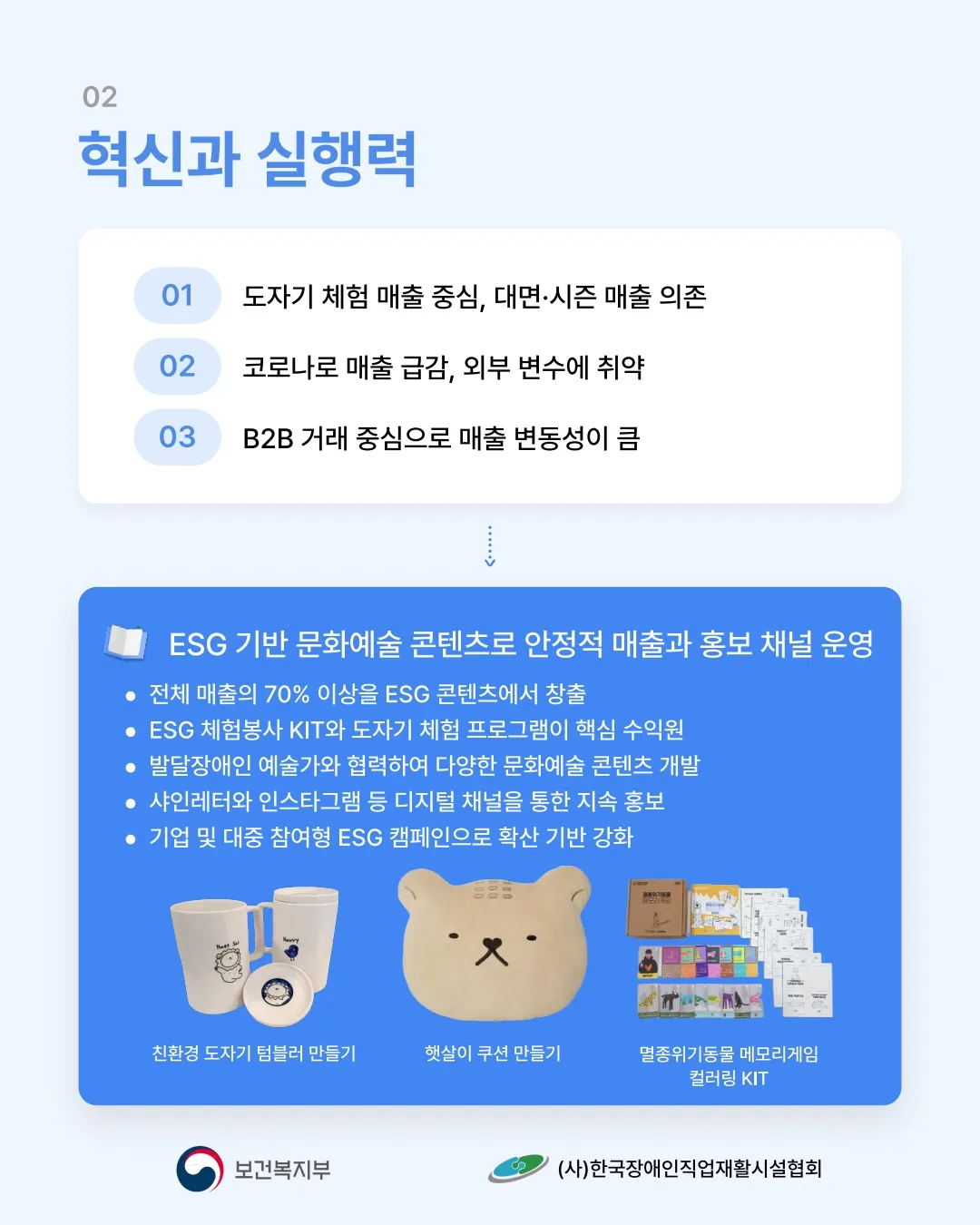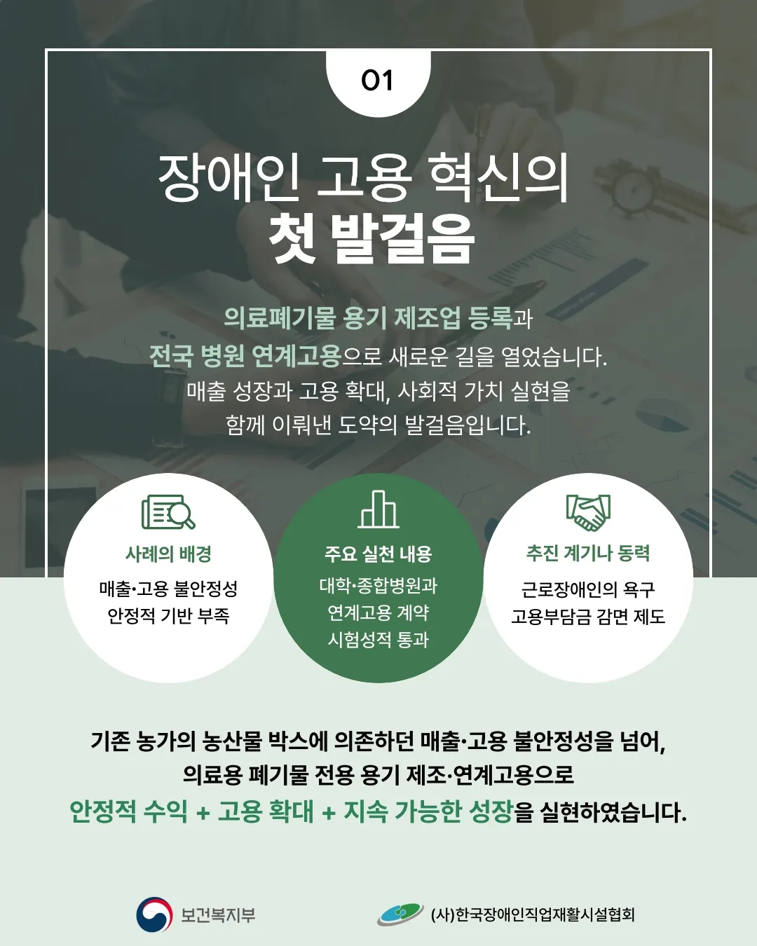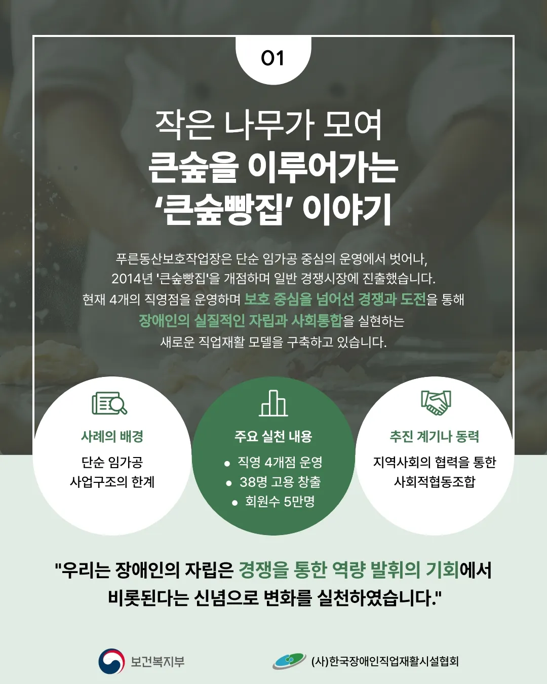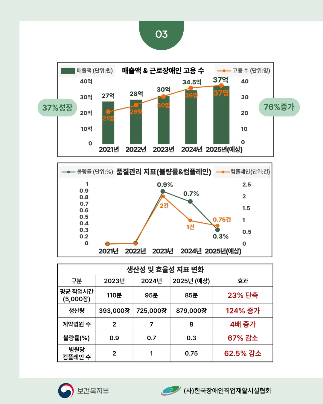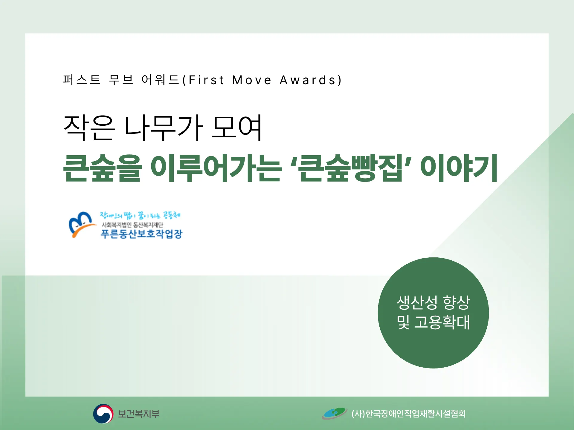 우수사례 발표 통해 표준화·콘텐츠화해 전국 확산 도모 품질·브랜딩·ESG를 묶어 경쟁력 향상 모색에 나서 [더인디고] 2025년 9월 9일부터 10일까지 양재동 aT센터 제2전시장에서 열린 장애인직업재활시설 우수사례 발표회 「퍼스트 무브 어워드(First Move Awards)」는 ‘중증장애인생산품, 낯섦에서 일상으로’를 화두로 성황리에 막을 내렸다. 단순 전시를 넘어 공공·민간 바이어가 직접 제품을 체험·구매하며 판로 확대를 모색한 이번 박람회는, 중증장애인생산품을 ‘특수한 소비재’가 아닌 보편적 생활재로 재정의하는